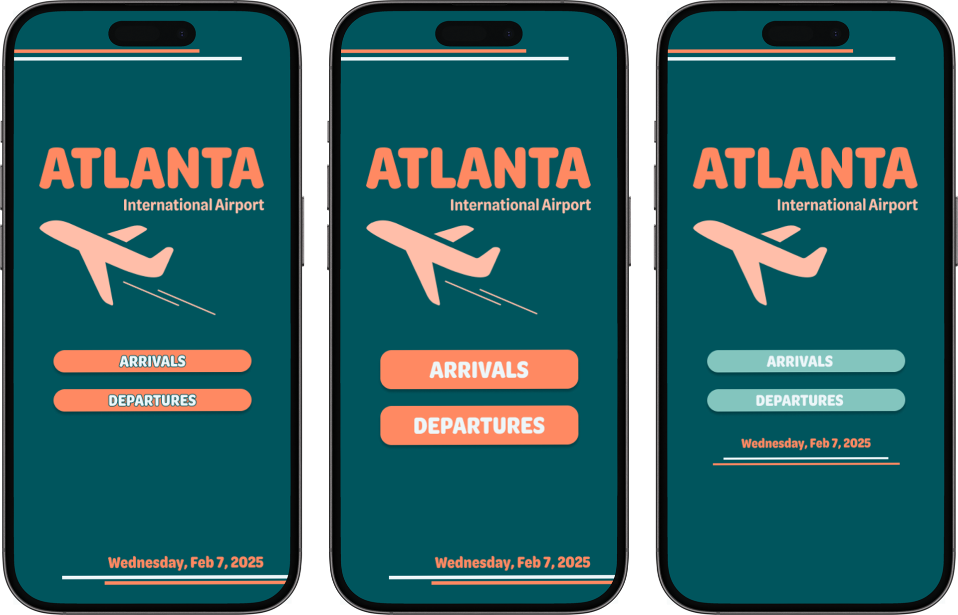 In this UI/UX design, I was tasked with creating a Flight Information Display System (FIDS) for the Hartsfield-Jackson Atlanta International Airport (ATL) that would primarily be viewed on an iPhone 14/15 Pro. Below is my process on how I came up with my final interface and how my chosen audience impacted my choices.